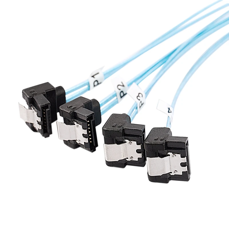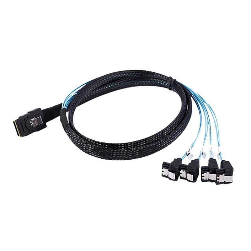 Best Price of AMS-Mini SAS 36P SFF-8087 to 4 SATA 7Pin 90 Degrees Target Hard Disk Data Cable 1M